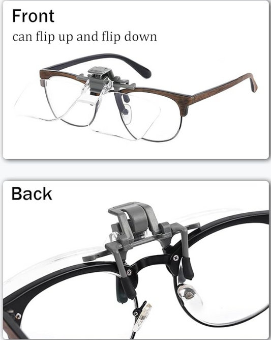 2X Hands-Free Clip-On Magnifier - Works with most glasses! Perfect for Lined Bifocal Wearers!